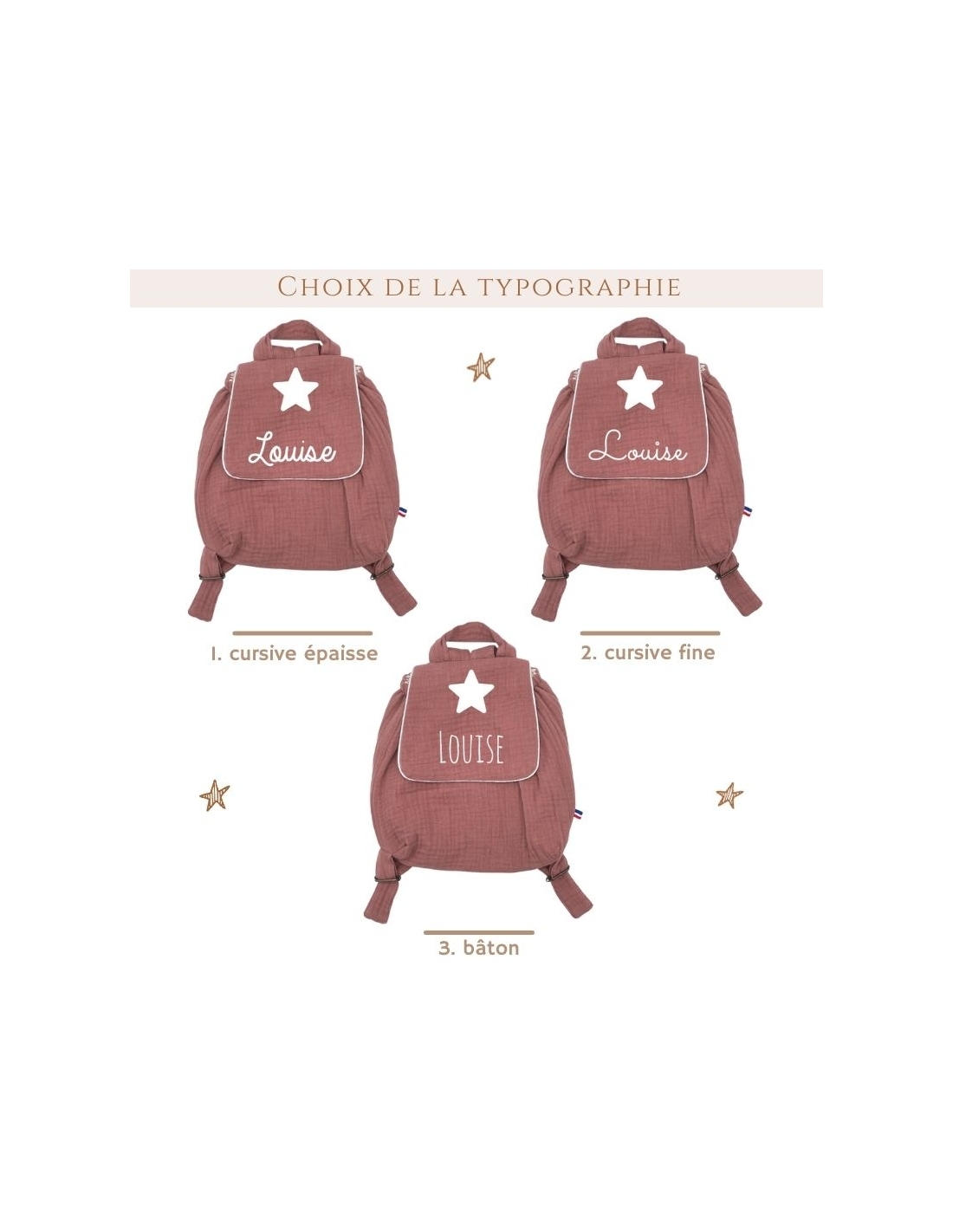 Un très joli sac à dos personnalisable dans lequel on peut transporter un goûter, des affaires de rechange, une tétine ou un doudou.