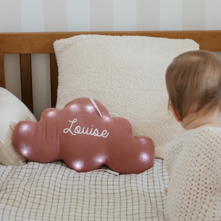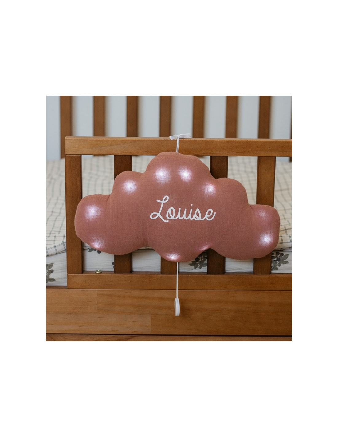 Veilleuse nuage musicale personnalisable en gaze de coton vieux rose