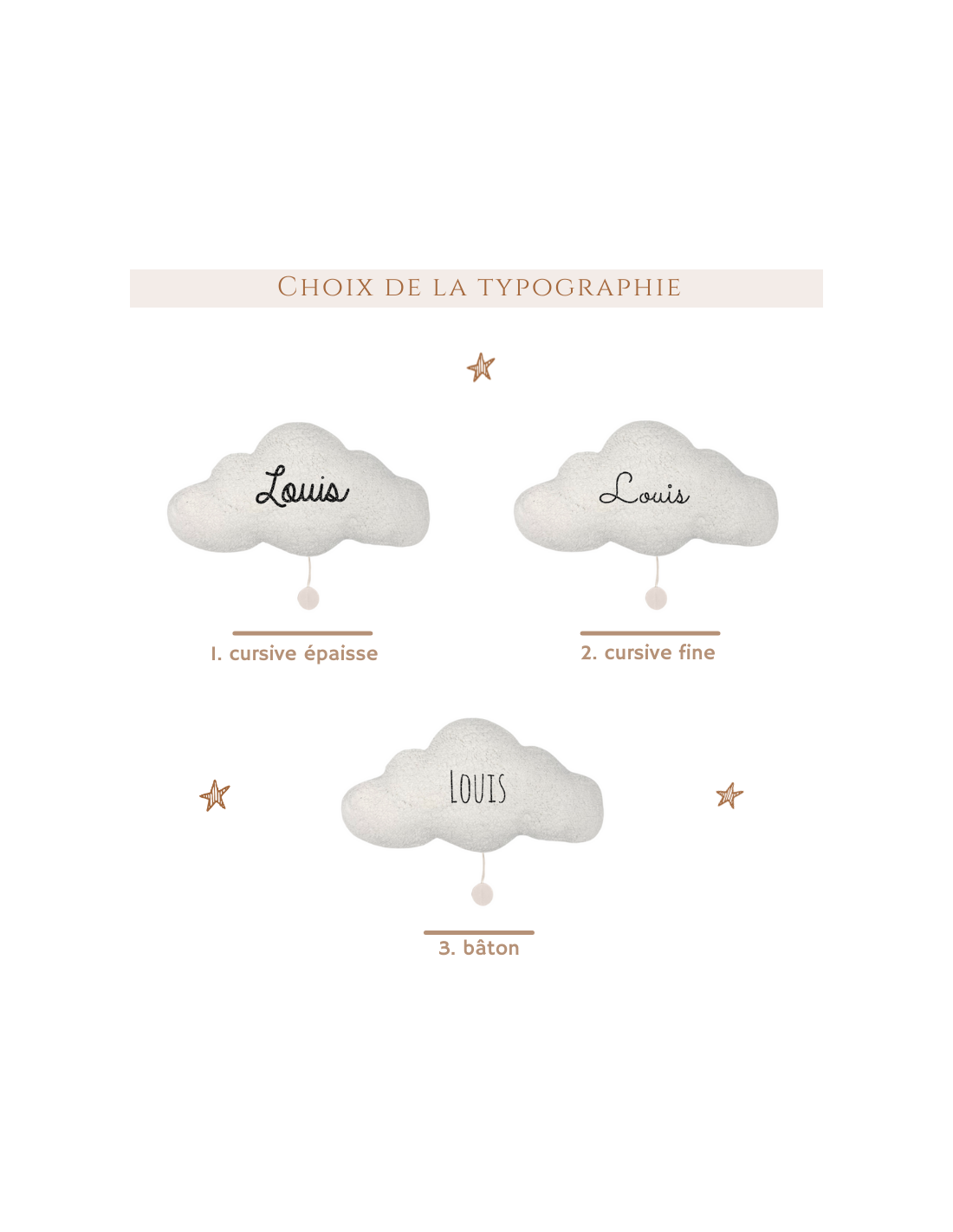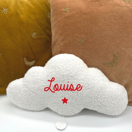 Notre jolie veilleuse musicale nuage mesure 36X21 cm. Elle est personnalisable au prénom de votre enfant.