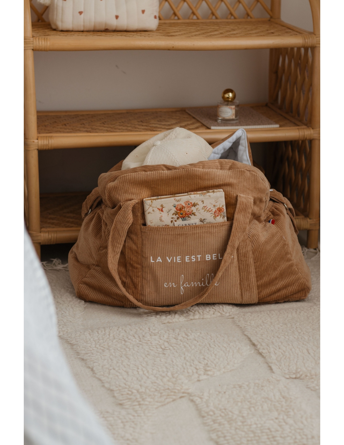 Sac à langer personnalisable en velours côtelé marron clair